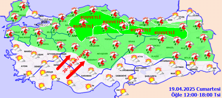According to the forecasts made by the General Directorate of Meteorology: The northern and central parts of our country are expected to be partly and very cloudy, the south and west of Marmara, the north of Central Anatolia, the Black Sea, the north of Eastern Anatolia and the areas around Sakarya, Kütahya, Aksaray, Niğde, Bitlis, Elazığ and Van are expected to have torrential downpours and thunderstorms, while other areas are expected to be partly cloudy and clear. Rainfall is expected to be locally heavy in the north and east of Ankara, the east of Çankırı, Bolu, Karabük, Kastamonu, Çorum, Amasya, Tokat, Gümüşhane, Bayburt and Erzurum and the interior parts of Samsun and Ordu. Fog and haze are expected in the morning and night hours in the Marmara and Black Sea areas. The wind is expected to blow hard from the south (30-50 km/h) in the southern parts of Central Anatolia at noon.